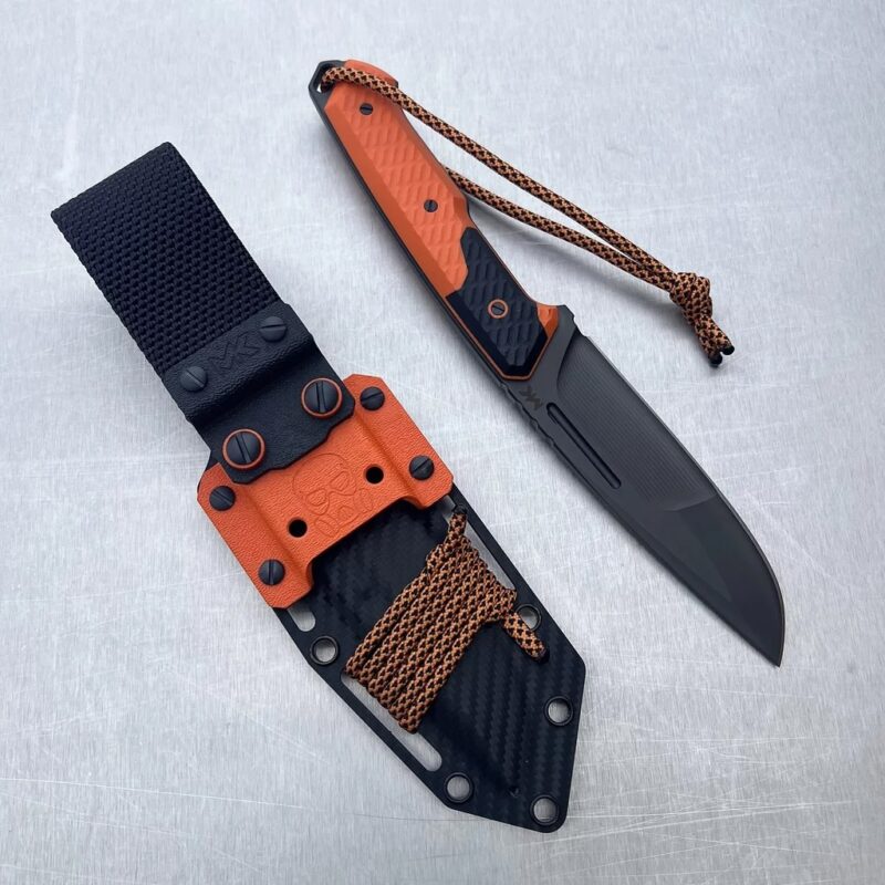 - Sheath: black Kydex plus orange additions