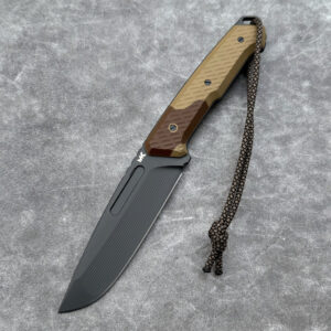 - Handle: coyote G10 + stabilized wood inserts