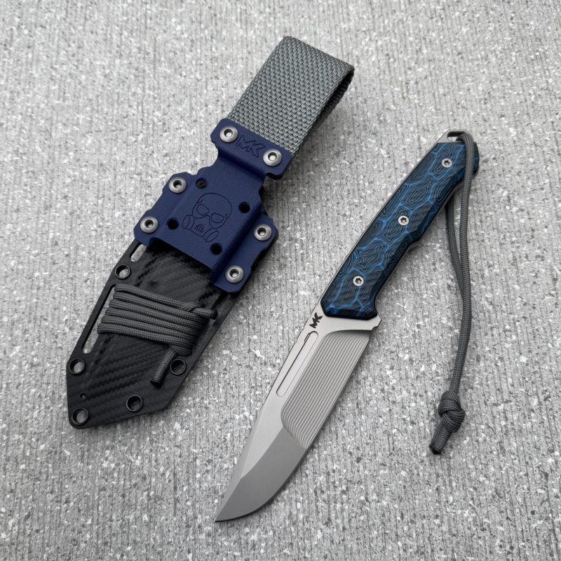 - Handle: Black Canvas Micarta and grey blue G10 liners