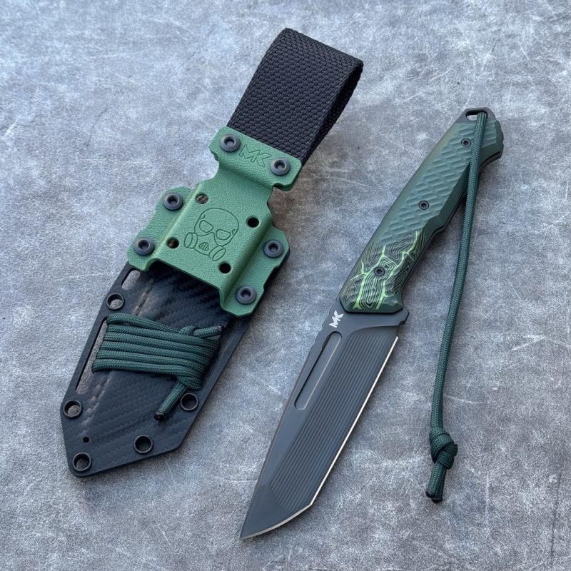 - Sheath: black Kydex, green additions