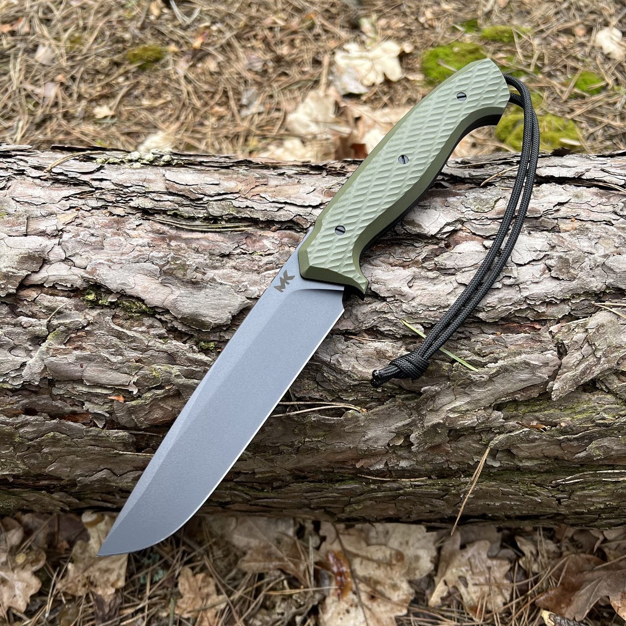 At the end of the knife handle there is a pin for attaching an additional cord, which can be used as a protection against dropping the knife during work, or an additional gripper that facilitates removing the knife from the holster. This solution also allows you to protect the knife against loss. Originally, a section of paracord with a shade matched to the design was attached to the knife.